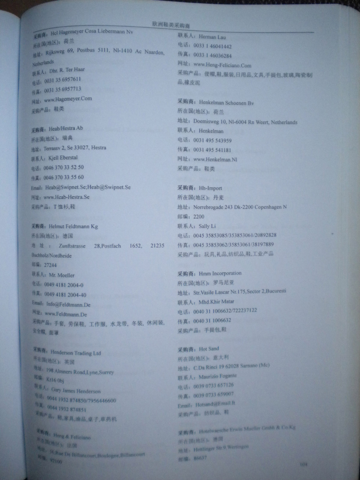 書刊簡(jiǎn)介:《全球采商黃頁(yè)》系列叢書是由全球最活躍的專業(yè)買家及重要國(guó)際性展會(huì)的到會(huì)采購(gòu)商名片信息匯編而成,包含三十多個(gè)行業(yè)分類,匯集了各類產(chǎn)品的買家信息。其中收錄的每家采購(gòu)商信息均是我們通過(guò)與買家面對(duì)面的登記整理收集而成,采購(gòu)意向明確,針對(duì)性強(qiáng)。為了確保信息的準(zhǔn)確性和時(shí)效性,我們定期進(jìn)行跟進(jìn)、回訪、補(bǔ)充及更新工作。每家采購(gòu)商信息包括國(guó)別、公司名稱、聯(lián)系人、地址、電話、傳真、電郵、網(wǎng)址、采購(gòu)產(chǎn)品等詳細(xì)內(nèi)容,每?jī)?cè)《黃頁(yè)》約有兩千家左右的采購(gòu)商信息。在當(dāng)前國(guó)際出口形勢(shì)日趨嚴(yán)峻的環(huán)境下,如何降低成本開拓國(guó)際市場(chǎng),是每個(gè)出口企業(yè)急需尋找的答案,我們相信通過(guò)我們10多年的外貿(mào)信息服務(wù)經(jīng)驗(yàn)和最新的國(guó)際買家資源服務(wù),將會(huì)為您拓展全球市場(chǎng)提供最直接有效的幫助。專業(yè)對(duì)口的買家信息一定會(huì)幫助貴公司打開更廣闊的外貿(mào)市場(chǎng)!