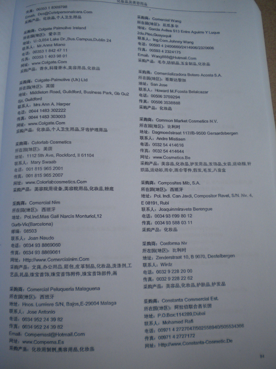 資料如何收集:在各大展會(huì)上,我們免費(fèi)向到會(huì)采購(gòu)商提供他們需要的最新產(chǎn)品雜志和光盤,我們也同時(shí)向他們派發(fā)帶有我們網(wǎng)站LOGO的精美禮品,這些最新的中國(guó)供應(yīng)商的信息,對(duì)他們很有幫助,采購(gòu)商會(huì)留下他們的名片,填寫詳細(xì)的產(chǎn)品求購(gòu)信息,以期望得到更多的供應(yīng)商的信息。收集到這些第一手的原始外商資料后,我們客戶服務(wù)中心立刻將名片掃描作成圖片,將產(chǎn)品采購(gòu)信息做成數(shù)據(jù)庫(kù),將采購(gòu)商資料按行業(yè)不同,匯編成冊(cè),出版發(fā)行《全球采購(gòu)商黃頁(yè)》系列。