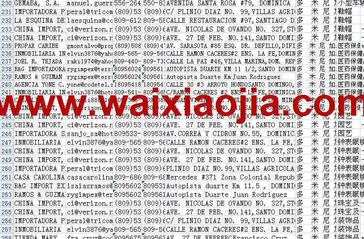 多米尼加采購商名單數(shù)據(jù)為Excel格式,信息可任意修改、復制、打印、導出及導入到傳真、郵件群發(fā)等軟件中,無任何限制。