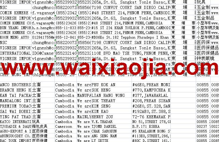 柬埔寨采購商黃頁包括:企業(yè)名稱、電子郵箱、聯(lián)系電話、傳真、聯(lián)系地址、聯(lián)系人、郵編等信息。
