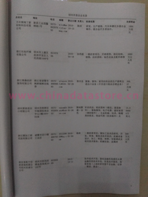 紹興外資企業(yè)黃頁經(jīng)過人工多次整理更新以及去重處理,提供開放的Excel等格式具有開放性特點,可以自由地添加、刪除、更改,導(dǎo)入導(dǎo)出到電腦中保存等操作,還可以輕松打印