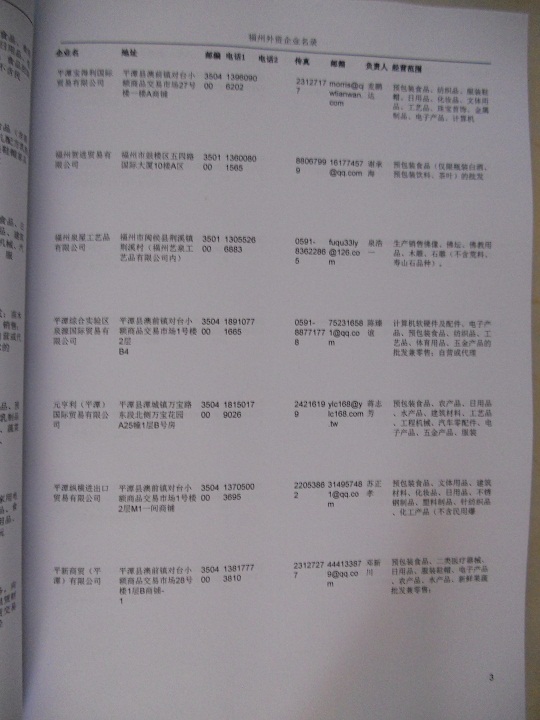 | 福州港澳臺(tái)投資企業(yè)黃頁 | 包含香港、澳門、臺(tái)灣地區(qū)在福州投資企業(yè) | 80% | RMB:500元 |