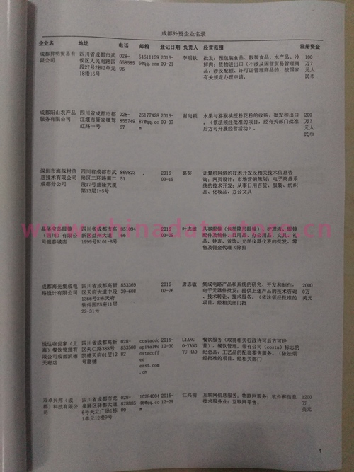 成都外資企業(yè)黃頁經(jīng)過人工多次整理更新以及去重處理,提供開放的Excel等格式具有開放性特點,可以自由地添加、刪除、更改,導(dǎo)入導(dǎo)出到電腦中保存等操作,還可以輕松打印