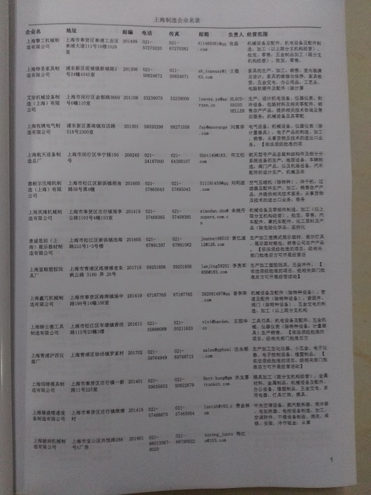 2021版最新上海企業(yè)黃頁包括《上海制造企業(yè)黃頁》、《上海貿(mào)易企業(yè)黃頁》、《上海民營企業(yè)黃頁》、《上海外資企業(yè)黃頁》、《上海外貿(mào)企業(yè)黃頁》共五冊,現(xiàn)優(yōu)惠價(jià):280元/冊。每冊內(nèi)容包括:單位名稱、地址、郵編、電話、傳真、郵箱、經(jīng)營范圍等;上海企業(yè)黃頁涵蓋了近幾年來最新成立的、有一定規(guī)模的企業(yè),具有非常高的營銷價(jià)值。有了這套黃頁開展業(yè)務(wù)也有了針對性,也省去了盲目去尋找客戶名單而浪費(fèi)的時(shí)間了,工作效率也會有很大的提高。歡迎需要上海企業(yè)黃頁的朋友及時(shí)聯(lián)系我們!