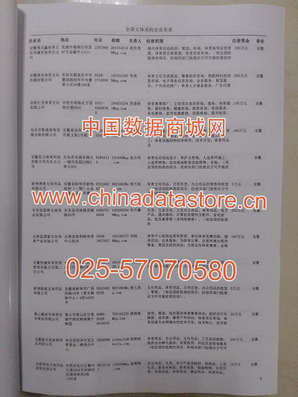 2024年新版中國文體戶外采購企業(yè)黃頁,收錄了全國各地經(jīng)營(yíng)范圍涉及文體戶外產(chǎn)品的貿(mào)易企業(yè),這些都是頗具實(shí)力的文體戶外產(chǎn)品的中國采購商。黃頁內(nèi)容包含:企業(yè)名稱、地址、電話、傳真、郵箱、經(jīng)營(yíng)范圍、省份、注冊(cè)資金等信息。該套黃頁包含一個(gè)黃頁光碟加一冊(cè)紙質(zhì)書刊,全國價(jià)格:1500元,省/直轄市價(jià)格:400元,城市價(jià)格:200元,共收錄了全國各地大概849(統(tǒng)計(jì)日期:2018.1)家文體戶外產(chǎn)品采購企業(yè)。黃頁光碟中是EXCEL格式,信息可任意修改、復(fù)制、打印、導(dǎo)出及導(dǎo)入到傳真、郵件群發(fā)等軟件中,無任何限制。