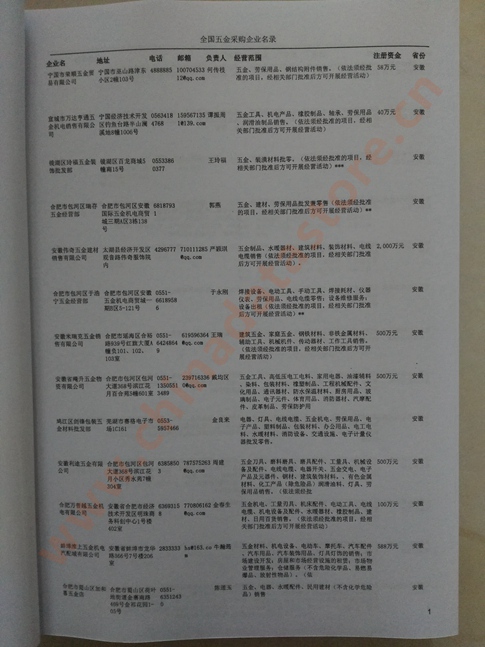 2024年新版中國五金采購企業(yè)黃頁,收錄了全國各地經(jīng)營范圍涉及五金產(chǎn)品的貿(mào)易企業(yè),這些都是頗具實(shí)力的五金產(chǎn)品的中國采購商。黃頁內(nèi)容包含:企業(yè)名稱、地址、電話、傳真、郵箱、經(jīng)營范圍、省份、注冊資金等信息。該套黃頁包含一個(gè)黃頁光碟加一冊紙質(zhì)書刊,全國價(jià)格:1500元,省/直轄市價(jià)格:400元,城市價(jià)格:200元,共收錄了全國各地大概29596(統(tǒng)計(jì)日期:2018.1)家五金產(chǎn)品采購企業(yè)。黃頁光碟中是EXCEL格式,信息可任意修改、復(fù)制、打印、導(dǎo)出及導(dǎo)入到傳真、郵件群發(fā)等軟件中,無任何限制。