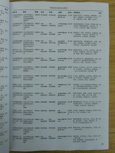 2024年新版中國(guó)紡織采購(gòu)企業(yè)黃頁(yè),收錄了全國(guó)各地經(jīng)營(yíng)范圍涉及紡織產(chǎn)品的貿(mào)易企業(yè),這些都是頗具實(shí)力的紡織產(chǎn)品的中國(guó)采購(gòu)商。黃頁(yè)內(nèi)容包含:企業(yè)名稱、地址、電話、傳真、郵箱、經(jīng)營(yíng)范圍、省份、注冊(cè)資金等信息。該套黃頁(yè)包含一個(gè)黃頁(yè)光碟加一冊(cè)紙質(zhì)書刊,全國(guó)價(jià)格:1500元,省/直轄市價(jià)格:400元,城市價(jià)格:200元,共收錄了全國(guó)各地大概34571(統(tǒng)計(jì)日期:2018.1)家紡織產(chǎn)品采購(gòu)企業(yè)。黃頁(yè)光碟中是EXCEL格式,信息可任意修改、復(fù)制、打印、導(dǎo)出及導(dǎo)入到傳真、郵件群發(fā)等軟件中,無任何限制。