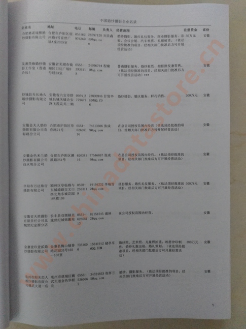 全國婚紗攝影企業(yè)黃頁 全國婚紗攝影企業(yè)黃頁 80% - 90% 3000元 附贈一冊婚紗攝影紙質印刷品