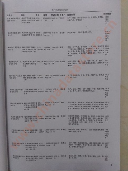 2021版最新梅州企業(yè)黃頁包括《梅州制造企業(yè)黃頁》、《梅州民營企業(yè)黃頁》,現(xiàn)優(yōu)惠價(jià):280元/冊。每冊內(nèi)容包括:單位名稱、地址、郵編、電話、傳真、郵箱、經(jīng)營范圍等;梅州企業(yè)黃頁涵蓋了近幾年來最新成立的、有一定規(guī)模的企業(yè),具有非常高的營銷價(jià)值。有了這套黃頁開展業(yè)務(wù)也有了針對性,也省去了盲目去尋找客戶名單而浪費(fèi)的時(shí)間了,工作效率也會有很大的提高。歡迎需要梅州企業(yè)黃頁的朋友及時(shí)聯(lián)系我們!