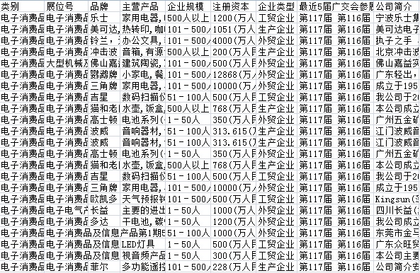 117屆廣交會(huì)參展商企業(yè)黃頁共30138條記錄(部分企業(yè)參加不止一期,實(shí)際數(shù)量2萬家左右)。售價(jià)200元,或聯(lián)系網(wǎng)站客服執(zhí)行任務(wù)免費(fèi)獲取