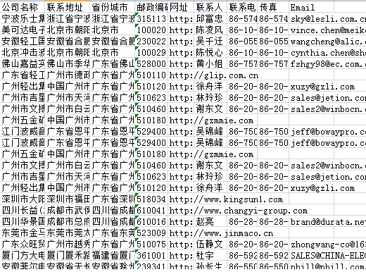117屆廣交會(huì)參展商黃頁數(shù)據(jù)為Excel格式,信息可任意修改、復(fù)制、打印、導(dǎo)出及導(dǎo)入到傳真、郵件群發(fā)等軟件中,無任何限制。
