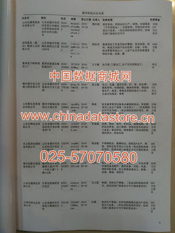 2021版最新德州企業(yè)黃頁包括《德州制造企業(yè)黃頁》、《德州民營企業(yè)黃頁》,現(xiàn)優(yōu)惠價(jià):280元/冊。每冊內(nèi)容包括:單位名稱、地址、郵編、電話、傳真、郵箱、經(jīng)營范圍等;德州企業(yè)黃頁涵蓋了近幾年來最新成立的、有一定規(guī)模的企業(yè),具有非常高的營銷價(jià)值。有了這套黃頁開展業(yè)務(wù)也有了針對性,也省去了盲目去尋找客戶名單而浪費(fèi)的時(shí)間了,工作效率也會有很大的提高。歡迎需要德州企業(yè)黃頁的朋友及時(shí)聯(lián)系我們!