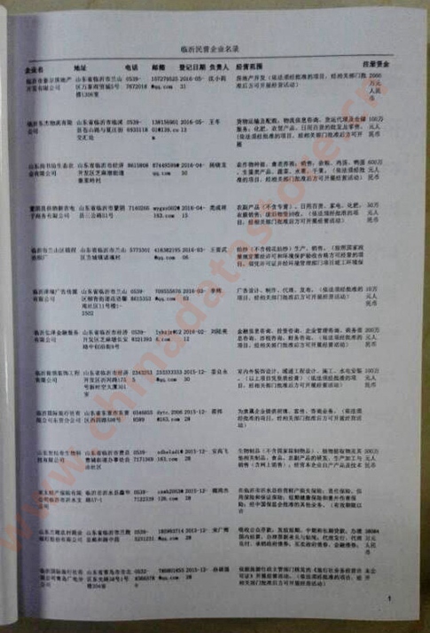 2021版最新臨沂企業(yè)黃頁包括《臨沂制造企業(yè)黃頁》、《臨沂民營企業(yè)黃頁》,現(xiàn)優(yōu)惠價:280元/冊。每冊內(nèi)容包括:單位名稱、地址、郵編、電話、傳真、郵箱、經(jīng)營范圍等;臨沂企業(yè)黃頁涵蓋了近幾年來最新成立的、有一定規(guī)模的企業(yè),具有非常高的營銷價值。有了這套黃頁開展業(yè)務(wù)也有了針對性,也省去了盲目去尋找客戶名單而浪費的時間了,工作效率也會有很大的提高。歡迎需要臨沂企業(yè)黃頁的朋友及時聯(lián)系我們!