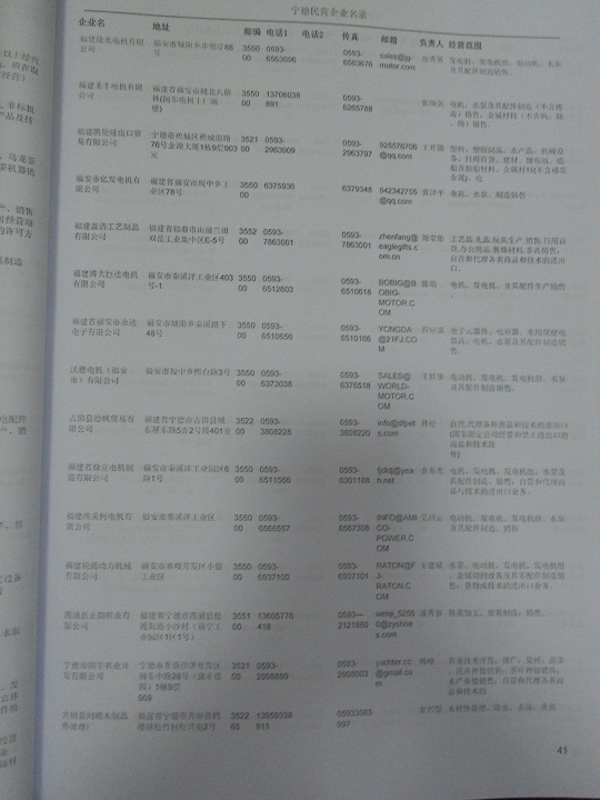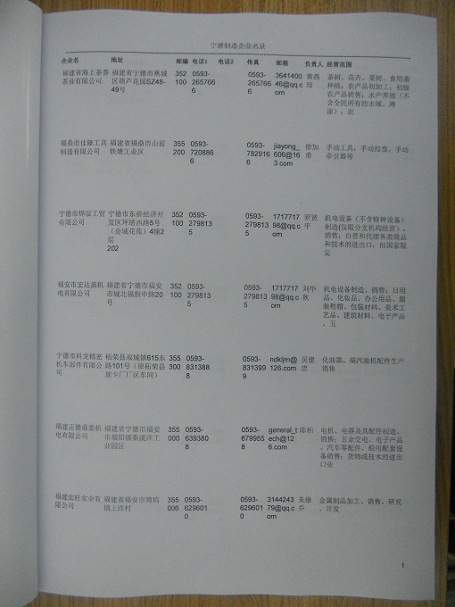 2021版最新寧德企業(yè)黃頁(yè)包括《寧德制造企業(yè)黃頁(yè)》、《寧德民營(yíng)企業(yè)黃頁(yè)》,現(xiàn)優(yōu)惠價(jià):280元/冊(cè)。每?jī)?cè)內(nèi)容包括:?jiǎn)挝幻Q(chēng)、地址、郵編、電話(huà)、傳真、郵箱、經(jīng)營(yíng)范圍等;寧德企業(yè)黃頁(yè)涵蓋了近幾年來(lái)最新成立的、有一定規(guī)模的企業(yè),具有非常高的營(yíng)銷(xiāo)價(jià)值。有了這套黃頁(yè)開(kāi)展業(yè)務(wù)也有了針對(duì)性,也省去了盲目去尋找客戶(hù)名單而浪費(fèi)的時(shí)間了,工作效率也會(huì)有很大的提高。歡迎需要寧德企業(yè)黃頁(yè)的朋友及時(shí)聯(lián)系我們!