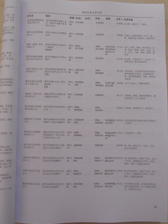 2021版最新莆田企業(yè)黃頁(yè)包括《莆田制造企業(yè)黃頁(yè)》、《莆田民營(yíng)企業(yè)黃頁(yè)》,現(xiàn)優(yōu)惠價(jià):280元/冊(cè)。每?jī)?cè)內(nèi)容包括:?jiǎn)挝幻Q、地址、郵編、電話、傳真、郵箱、經(jīng)營(yíng)范圍等;莆田企業(yè)黃頁(yè)涵蓋了近幾年來(lái)最新成立的、有一定規(guī)模的企業(yè),具有非常高的營(yíng)銷價(jià)值。有了這套黃頁(yè)開展業(yè)務(wù)也有了針對(duì)性,也省去了盲目去尋找客戶名單而浪費(fèi)的時(shí)間了,工作效率也會(huì)有很大的提高。歡迎需要莆田企業(yè)黃頁(yè)的朋友及時(shí)聯(lián)系我們!