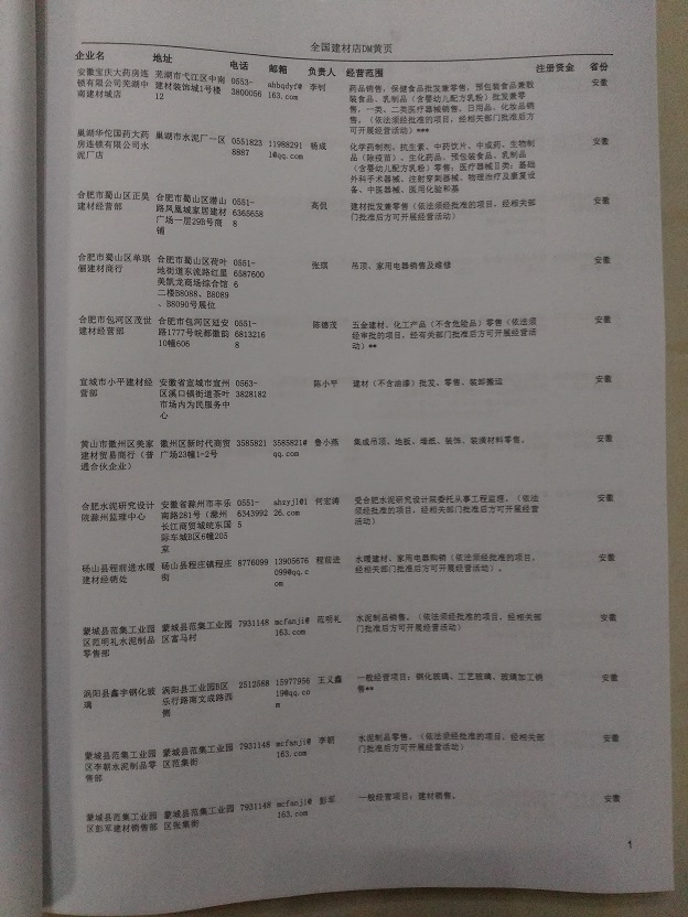 建材店黃頁收錄了最新的建材店企業(yè)名單,具有極高的營銷價值,實實在在提高銷售業(yè)績