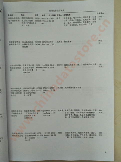 2021版最新信陽企業(yè)黃頁包括《信陽制造企業(yè)黃頁》、《信陽民營企業(yè)黃頁》,現(xiàn)優(yōu)惠價:280元/冊。每冊內(nèi)容包括:單位名稱、地址、郵編、電話、傳真、郵箱、經(jīng)營范圍等;信陽企業(yè)黃頁涵蓋了近幾年來最新成立的、有一定規(guī)模的企業(yè),具有非常高的營銷價值。有了這套黃頁開展業(yè)務(wù)也有了針對性,也省去了盲目去尋找客戶名單而浪費(fèi)的時間了,工作效率也會有很大的提高。歡迎需要信陽企業(yè)黃頁的朋友及時聯(lián)系我們!
