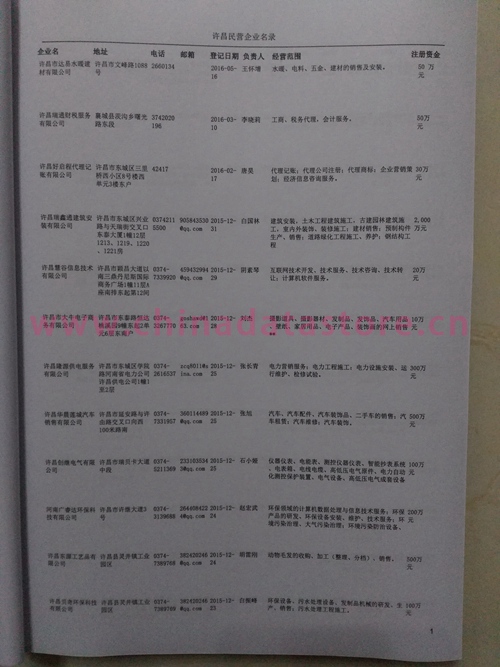 2021版最新許昌企業(yè)黃頁包括《許昌制造企業(yè)黃頁》、《許昌民營企業(yè)黃頁》,現(xiàn)優(yōu)惠價:280元/冊。每冊內(nèi)容包括:單位名稱、地址、郵編、電話、傳真、郵箱、經(jīng)營范圍等;許昌企業(yè)黃頁涵蓋了近幾年來最新成立的、有一定規(guī)模的企業(yè),具有非常高的營銷價值。有了這套黃頁開展業(yè)務也有了針對性,也省去了盲目去尋找客戶名單而浪費的時間了,工作效率也會有很大的提高。歡迎需要許昌企業(yè)黃頁的朋友及時聯(lián)系我們!