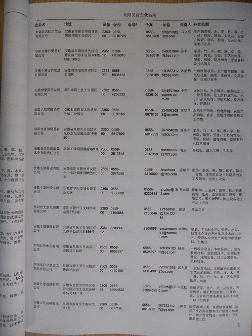 2021版最新阜陽(yáng)企業(yè)黃頁(yè)包括《阜陽(yáng)制造企業(yè)黃頁(yè)》、《阜陽(yáng)民營(yíng)企業(yè)黃頁(yè)》,現(xiàn)優(yōu)惠價(jià):280元/冊(cè)。每?jī)?cè)內(nèi)容包括:?jiǎn)挝幻Q、地址、郵編、電話、傳真、郵箱、經(jīng)營(yíng)范圍等;阜陽(yáng)企業(yè)黃頁(yè)涵蓋了近幾年來(lái)最新成立的、有一定規(guī)模的企業(yè),具有非常高的營(yíng)銷價(jià)值。有了這套黃頁(yè)開(kāi)展業(yè)務(wù)也有了針對(duì)性,也省去了盲目去尋找客戶名單而浪費(fèi)的時(shí)間了,工作效率也會(huì)有很大的提高。歡迎需要阜陽(yáng)企業(yè)黃頁(yè)的朋友及時(shí)聯(lián)系我們!