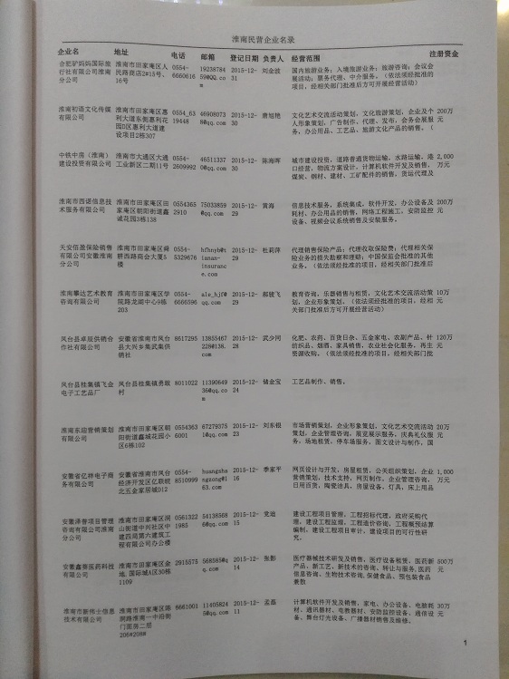 2021版最新淮南企業(yè)黃頁包括《淮南制造企業(yè)黃頁》、《淮南民營企業(yè)黃頁》,現(xiàn)優(yōu)惠價:280元/冊。每冊內(nèi)容包括:單位名稱、地址、郵編、電話、傳真、郵箱、經(jīng)營范圍等;淮南企業(yè)黃頁涵蓋了近幾年來最新成立的、有一定規(guī)模的企業(yè),具有非常高的營銷價值。有了這套黃頁開展業(yè)務(wù)也有了針對性,也省去了盲目去尋找客戶名單而浪費的時間了,工作效率也會有很大的提高。歡迎需要淮南企業(yè)黃頁的朋友及時聯(lián)系我們!