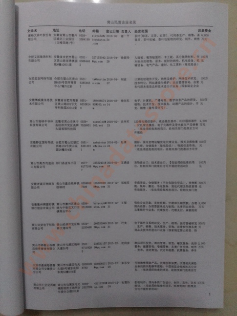 2021版最新黃山企業(yè)黃頁包括《黃山制造企業(yè)黃頁》、《黃山民營企業(yè)黃頁》,現(xiàn)優(yōu)惠價(jià):280元/冊(cè)。每?jī)?cè)內(nèi)容包括:?jiǎn)挝幻Q、地址、郵編、電話、傳真、郵箱、經(jīng)營范圍等;黃山企業(yè)黃頁涵蓋了近幾年來最新成立的、有一定規(guī)模的企業(yè),具有非常高的營銷價(jià)值。有了這套黃頁開展業(yè)務(wù)也有了針對(duì)性,也省去了盲目去尋找客戶名單而浪費(fèi)的時(shí)間了,工作效率也會(huì)有很大的提高。歡迎需要黃山企業(yè)黃頁的朋友及時(shí)聯(lián)系我們!