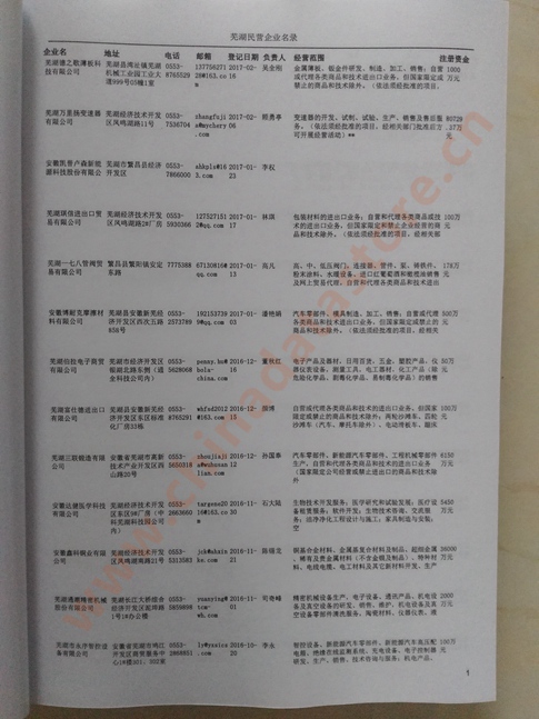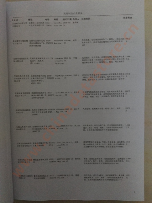 2021版最新蕪湖企業(yè)黃頁包括《蕪湖制造企業(yè)黃頁》、《蕪湖民營企業(yè)黃頁》,現(xiàn)優(yōu)惠價:280元/冊。每冊內(nèi)容包括:單位名稱、地址、郵編、電話、傳真、郵箱、經(jīng)營范圍等;蕪湖企業(yè)黃頁涵蓋了近幾年來最新成立的、有一定規(guī)模的企業(yè),具有非常高的營銷價值。有了這套黃頁開展業(yè)務(wù)也有了針對性,也省去了盲目去尋找客戶名單而浪費(fèi)的時間了,工作效率也會有很大的提高。歡迎需要蕪湖企業(yè)黃頁的朋友及時聯(lián)系我們!