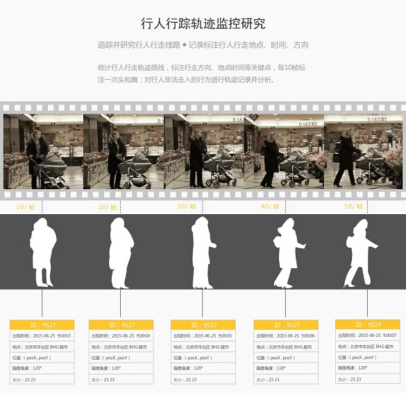 采集行人對象跟蹤視頻,有效時長1.8小時,每10幀標注一幅,用于安防監(jiān)控、入侵檢測、運動目標識別等