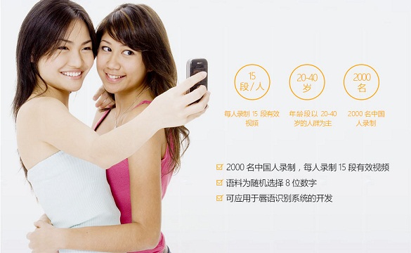 2000名中國人用手機(jī)錄制的8位數(shù)字視頻,每人錄制15段視頻??捎糜诖秸Z識別研發(fā)