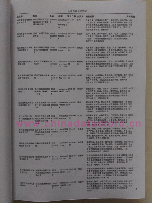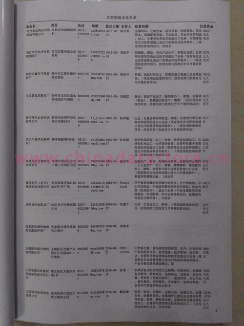 2021版最新江蘇企業(yè)黃頁包括《江蘇制造企業(yè)黃頁》、《江蘇貿(mào)易企業(yè)黃頁》、《江蘇民營企業(yè)黃頁》共三冊,優(yōu)惠價:280元/冊。每冊內(nèi)容包括:單位名稱、地址、郵編、電話、傳真、郵箱、經(jīng)營范圍等;江蘇企業(yè)黃頁涵蓋了近幾年來最新成立的、有一定規(guī)模的企業(yè),具有非常高的營銷價值。有了這套黃頁開展業(yè)務(wù)也有了針對性,也省去了盲目去尋找客戶名單而浪費的時間了,工作效率也會有很大的提高。歡迎需要江蘇企業(yè)黃頁的朋友及時聯(lián)系我們!