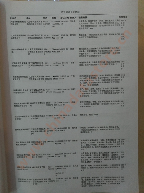 2021版最新遼寧企業(yè)黃頁包括《遼寧制造企業(yè)黃頁》、《遼寧貿(mào)易企業(yè)黃頁》、《遼寧民營企業(yè)黃頁》共三冊,優(yōu)惠價:280元/冊。每冊內(nèi)容包括:單位名稱、地址、郵編、電話、傳真、郵箱、經(jīng)營范圍等;遼寧企業(yè)黃頁涵蓋了近幾年來最新成立的、有一定規(guī)模的企業(yè),具有非常高的營銷價值。有了這套黃頁開展業(yè)務(wù)也有了針對性,也省去了盲目去尋找客戶名單而浪費(fèi)的時間了,工作效率也會有很大的提高。歡迎需要遼寧企業(yè)黃頁的朋友及時聯(lián)系我們!