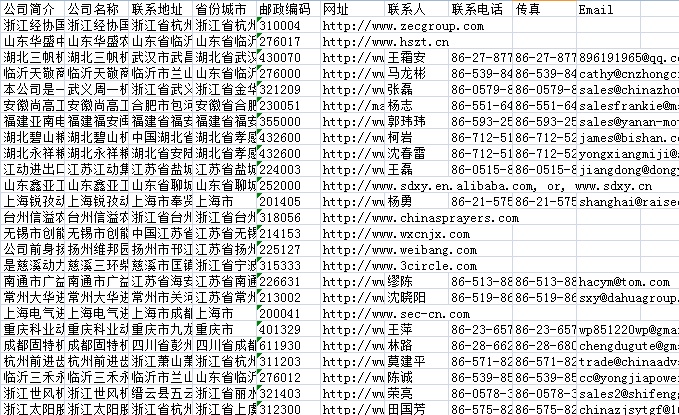 119屆廣交會(huì)參展商黃頁(yè)數(shù)據(jù)為Excel格式,信息可任意修改、復(fù)制、打印、導(dǎo)出及導(dǎo)入到傳真、郵件群發(fā)等軟件中,無(wú)任何限制。
