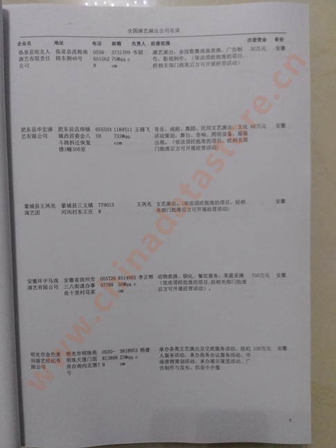 | 某省或直轄市 | 如上海、浙江演藝演出企業(yè)名單 | 80% - 90% | 600元 | 附贈一冊演藝演出紙質印刷品 |
