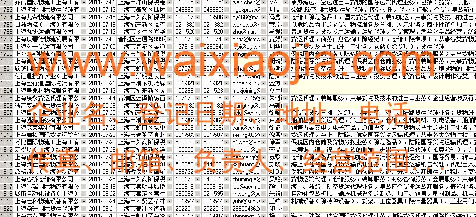 湖北貨運代理公司名單數(shù)據(jù)為Excel格式,信息可任意修改、復(fù)制、打印、導(dǎo)出及導(dǎo)入到傳真、郵件群發(fā)等軟件中,無任何限制。