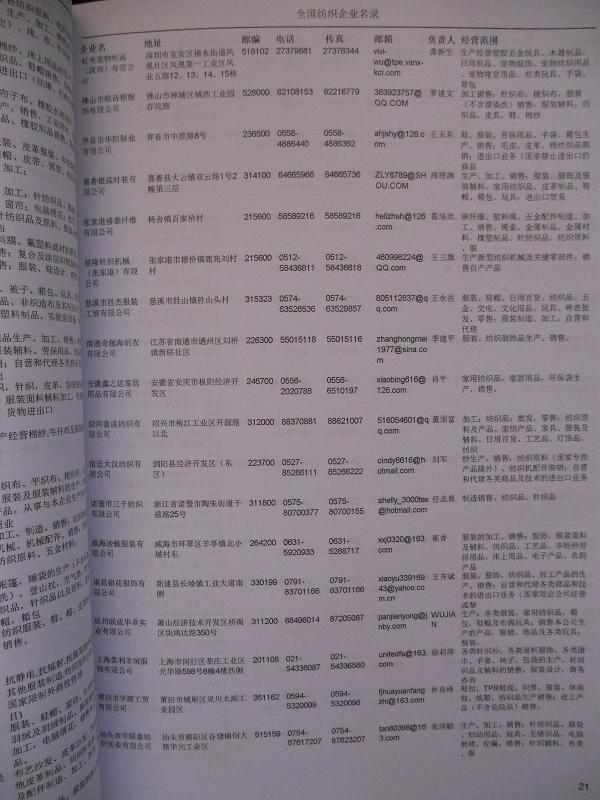 紡織外貿(mào)企業(yè)名錄紡織進(jìn)出口企業(yè)名錄,紡織進(jìn)口企業(yè)名錄,紡織出口企業(yè)名錄