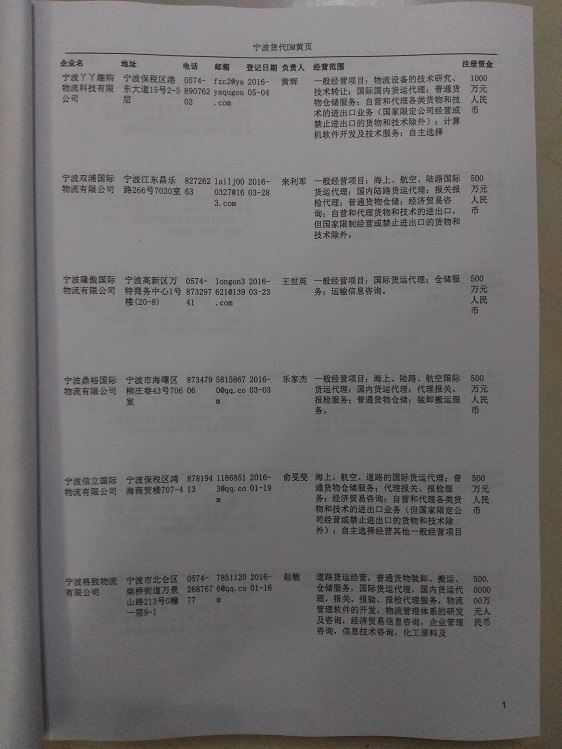最新寧波貨代公司黃頁 數(shù)據(jù)更新日期2024年12月最新。