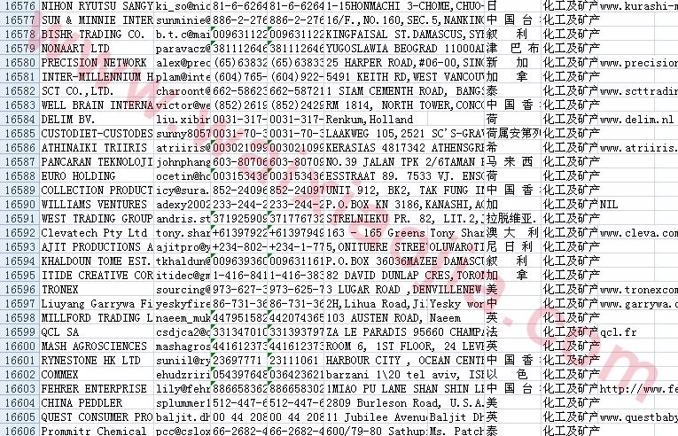 礦產(chǎn)化工采購商名單數(shù)據(jù)為Excel格式,信息可任意修改、復(fù)制、打印、導(dǎo)出及導(dǎo)入到傳真、郵件群發(fā)等軟件中,無任何限制。