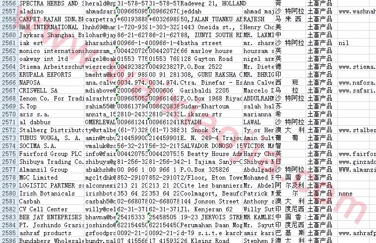 土畜采購商名單數(shù)據(jù)為Excel格式,信息可任意修改、復(fù)制、打印、導(dǎo)出及導(dǎo)入到傳真、郵件群發(fā)等軟件中,無任何限制。