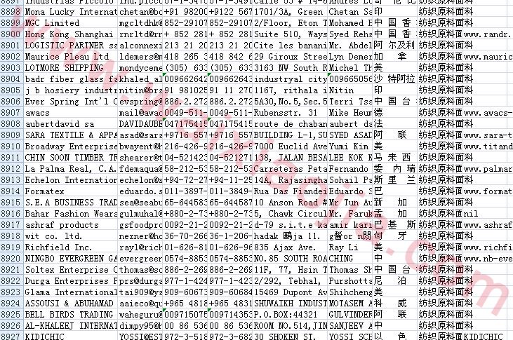 紡織原料面料采購商名單數(shù)據(jù)為Excel格式,信息可任意修改、復制、打印、導出及導入到傳真、郵件群發(fā)等軟件中,無任何限制。