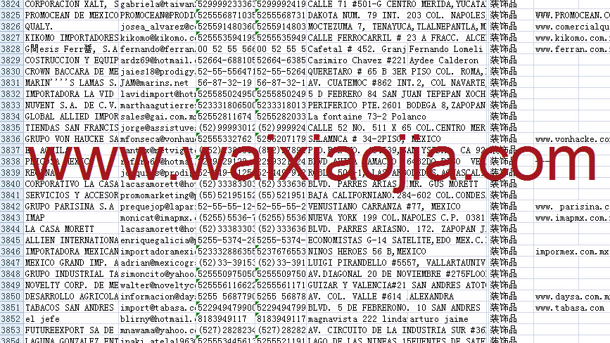 墨西哥采購商名單數(shù)據(jù)為Excel格式,信息可任意修改、復(fù)制、打印、導(dǎo)出及導(dǎo)入到傳真、郵件群發(fā)等軟件中,無任何限制。