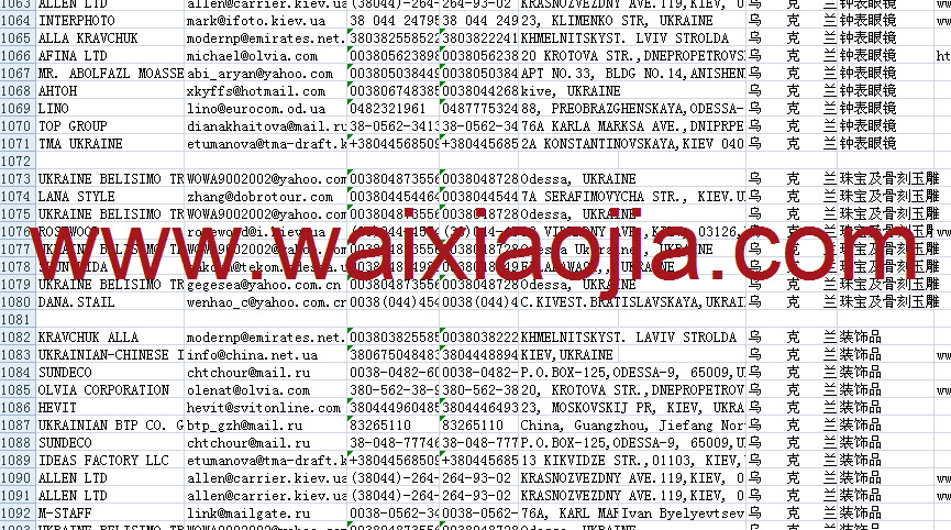 烏克蘭采購商名單數(shù)據(jù)為Excel格式,信息可任意修改、復制、打印、導出及導入到傳真、郵件群發(fā)等軟件中,無任何限制。