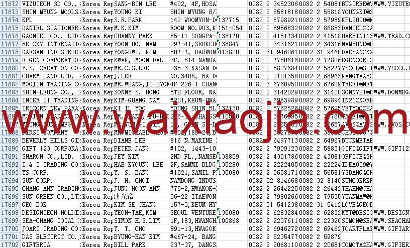 韓國采購商名單數(shù)據(jù)為Excel格式,信息可任意修改、復(fù)制、打印、導(dǎo)出及導(dǎo)入到傳真、郵件群發(fā)等軟件中,無任何限制。