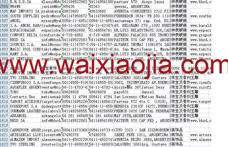 阿根廷采購商名單數(shù)據(jù)為Excel格式,信息可任意修改、復制、打印、導出及導入到傳真、郵件群發(fā)等軟件中,無任何限制。